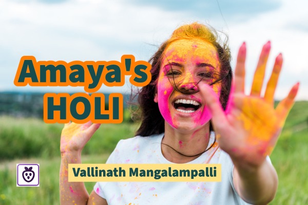 She refused to be softened. I picked up a few colors for myself and asked Amaya, “let us go. I will also play with you, It is a long time since I played Holi” saying so I splashed colors onto her. I switched off my office phone. I gave a few tickles to my favorite daughter and we both walked out.