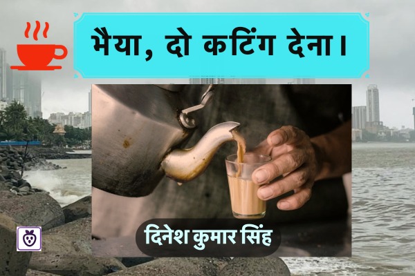 “भैया, दो कटिंग देना।” दुकानदार ने आवाज सुनते, बिना ऊपर देखते, पीतल के बर्तन में ख़ौलते चाय को कलछुल से ऊपर उछाला और अच्छी तरह मिला दिया।