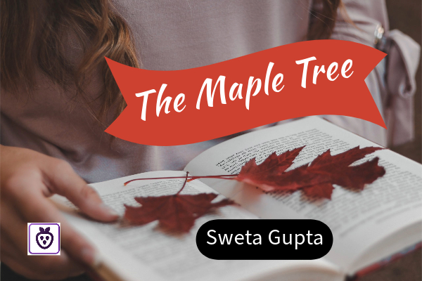 While coming back from the school trip. The school bus had halted near the woods. While other children were busy playing. Shree secluded herself from her friends and sat under the maple tree for a while. The dried red leaves looked different to the little child.