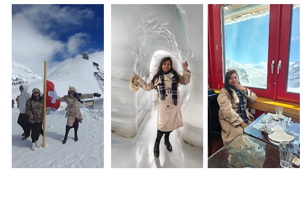 Very soon I let go of my Gulmarg hangover and drenched myself in the marvel called Jungfrau. There was a blizzard and since I forgot my pair of gloves, I was wearing one of Monalisa’s…haw how to shoot a reel…I tried and failed! More than the nature I marvelled at the train ride.. though was scared of the altitude…I for one did not feel any gradient while climbing up the train! Though Monalisa said that could be because of my slumber! After getting down at the station we boarded the lift to reach the top of the tower, climbed a few stairs where did feel a bit of breathless, that could be due to nervousness. I mean there were senior citizens, kids and things were built in such a way there was hardly any huffing puffing…you can go out in the mountains , look at the glacier and come inside if you feel cold or breathless… as simple as that!