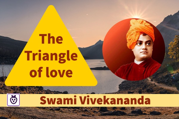There is well brought out the distinction between mere beggars and the real lovers of God. Begging is not the language of love. To worship God even for the sake of salvation or any other rewards equally degenerate. Love knows no reward. Love is always for love’s sake. The Bhakta loves because he cannot help loving. When you see a beautiful scenery and fall in love with it, you do not demand anything in the way of favour from the scenery, nor does the scenery demand anything from you. Yet the vision thereof brings you to a blissful state of the mind; it tones down all the friction in your soul, it makes you calm, almost raises you, for the time being, beyond your mortal nature and places you in a condition of quite divine ecstasy. This nature of real love is the first angle of our triangle. Ask not anything in return for your love; let your position be always that of the giver; give your love unto God, but do not ask anything in return even from Him.
